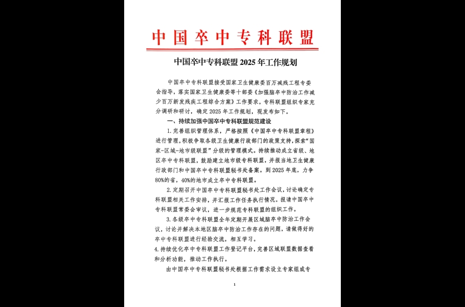 中国卒中专科联盟2025年工作规划